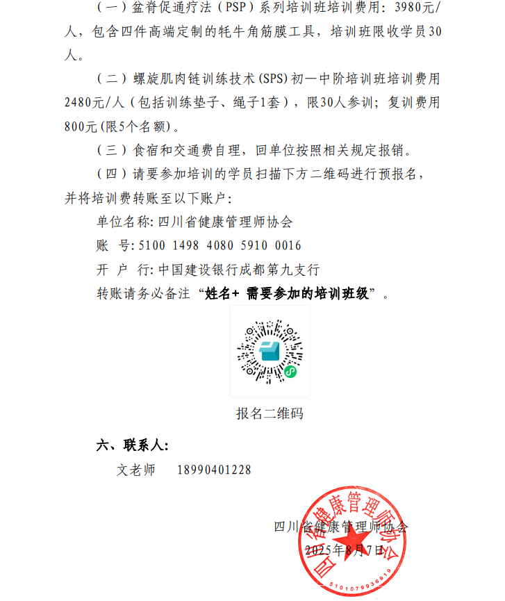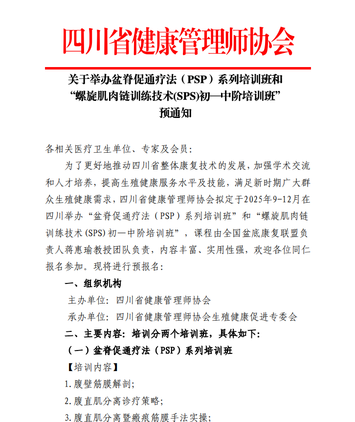 关于举办盆脊促通疗法(PSP)系列培训班和“螺旋肌肉链训练技术(SPS)初—中阶培训班”预通知